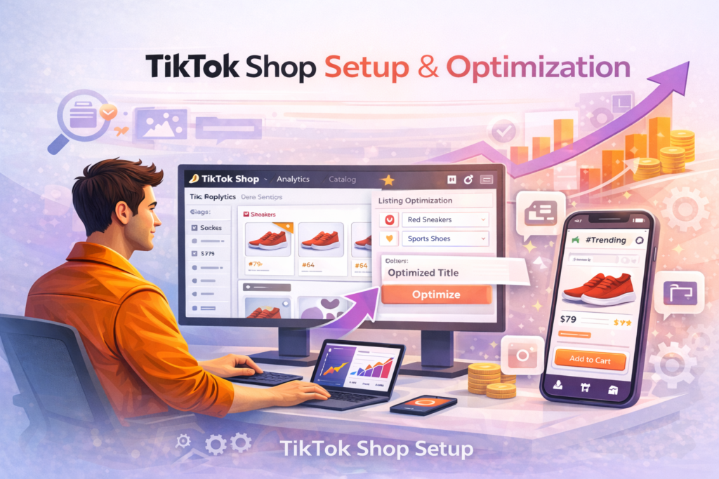 Our TikTok Shop Setup and Optimization service helps your business tap into TikTok’s rapidly growing e-commerce audience.